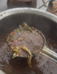 - Let the soup simmer for 3-4 mins to allow the flavours to blend in. Do not overcook. The vegetables we are using do not take very long to cook . We are looking for a crunchy texture of vegetables and prevent them from being overcooked and become soggy.