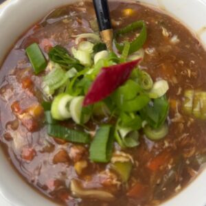- Beat an egg with a fork. Switch of the flame. Add the beaten egg and stir vigorously. Its important that the soup is boiling hot at this point. This will give the silky egg finish to the soup.